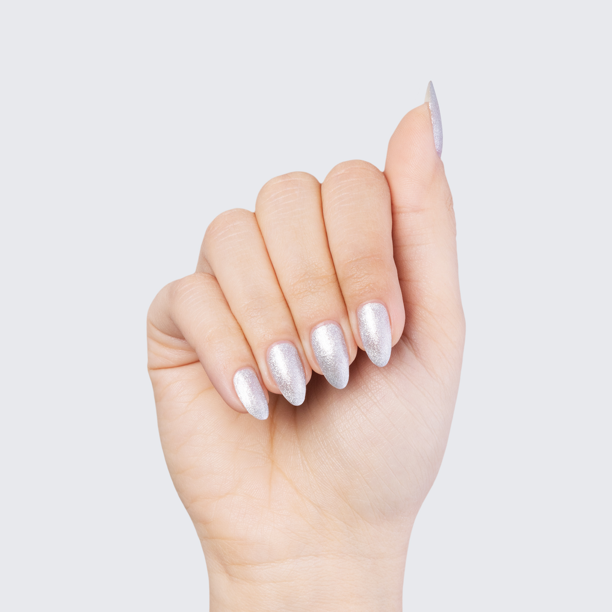 Pure silver. Metallic finish. Opaque. Cool undertone.