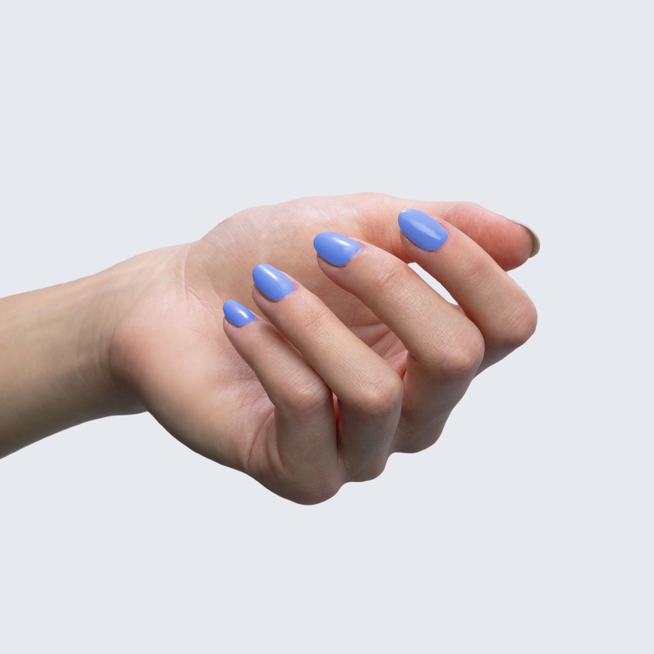 Periwinkle blue. Medium. Opaque. Cool undertone.