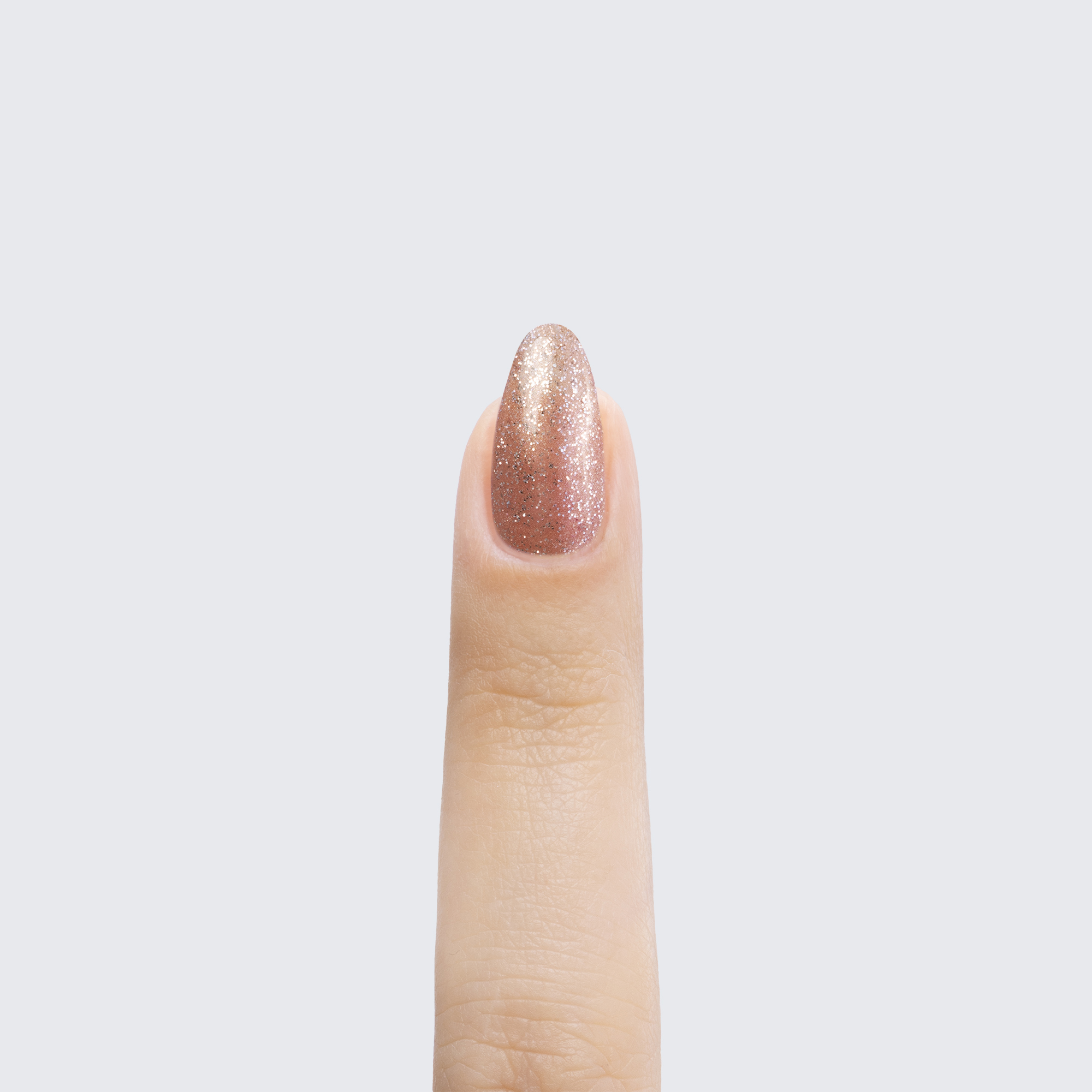 Rose gold. Light. Sparkles. Sheer. Warm undertone.